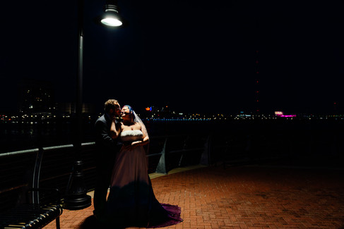 After capturing the magic of Treaty Oak, we made our way to the Riverwalk along the St. John’s River a spot known for its gorgeous waterfront views and the Jacksonville skyline sparkling in the background. The sky transformed into a stunning blend of colors, and I was able to get creative with off-camera flash photography, making the couple stand out against the glowing cityscape.